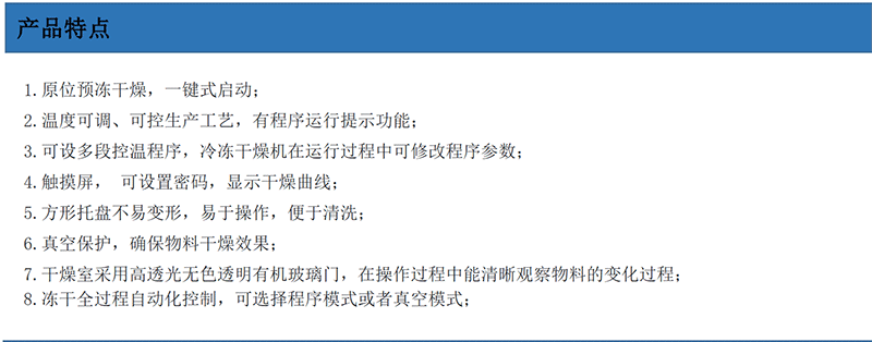 酸奶塊小型凍干機,簡化小型凍干機的繁瑣操作,防止物料的污染,控制物料水分升華。該系列機型具備加熱和控溫可編程功能,可查看凍干曲線,方便用戶觀察物料的凍干過程。